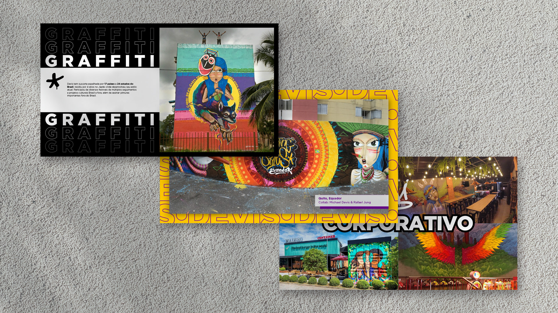Devis é um grafiteiro profissional com trabalhos em diversos países, como Estados Unidos, Alemanha, Peru, Panamá, Espanha, Índia e outros.
