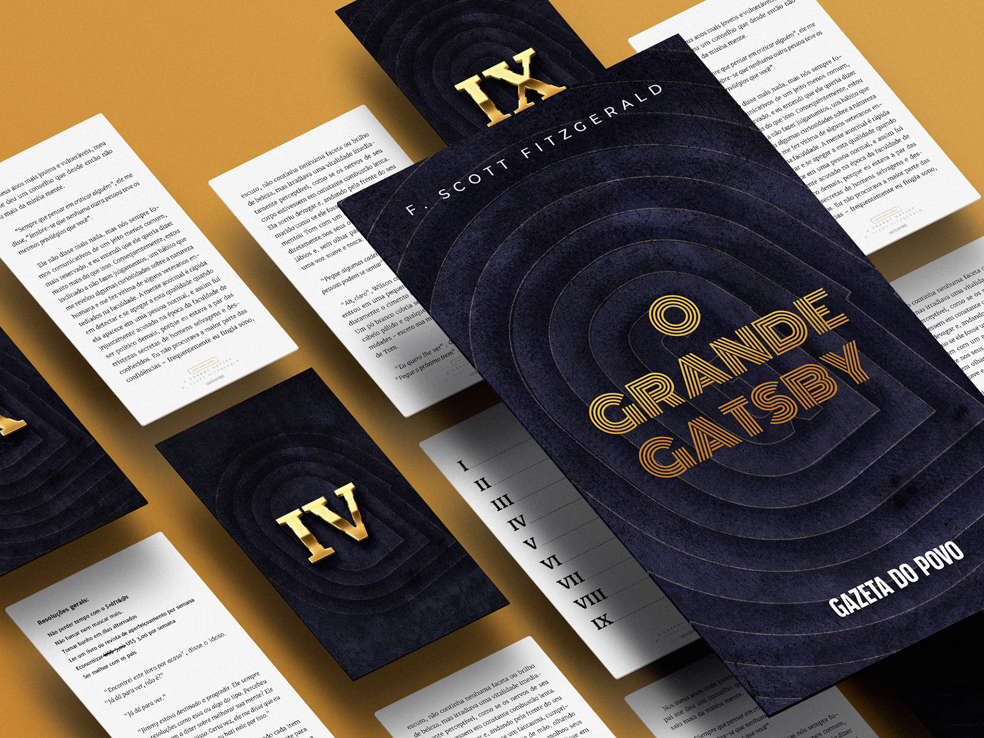 Gazeta do Povo, one of the biggest Brazilian daily newspaper launched its own edition of the classic The Great Gatsby, from F. Scott. Fitzgerald. I had the pleasure to do the visual identity, pages layout, the book cover, the website and all the marketing material. Check some of them in the following.