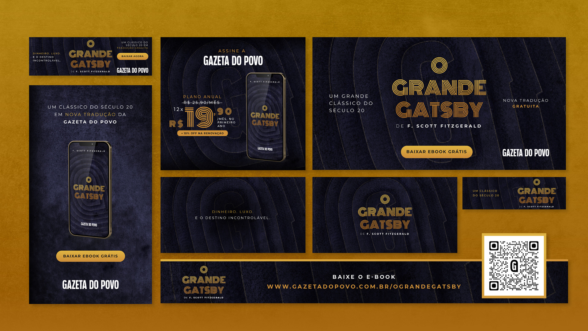 A Gazeta do Povo lançou a sua edição e tradução do clássico O Grande Gatsby, de F. Scott Fitzgerald. Tive o prazer de fazer toda a identidade visual para campanha, a diagramação, a capa do livro, o site e todas as peças de divulgação. Confira a seguir.